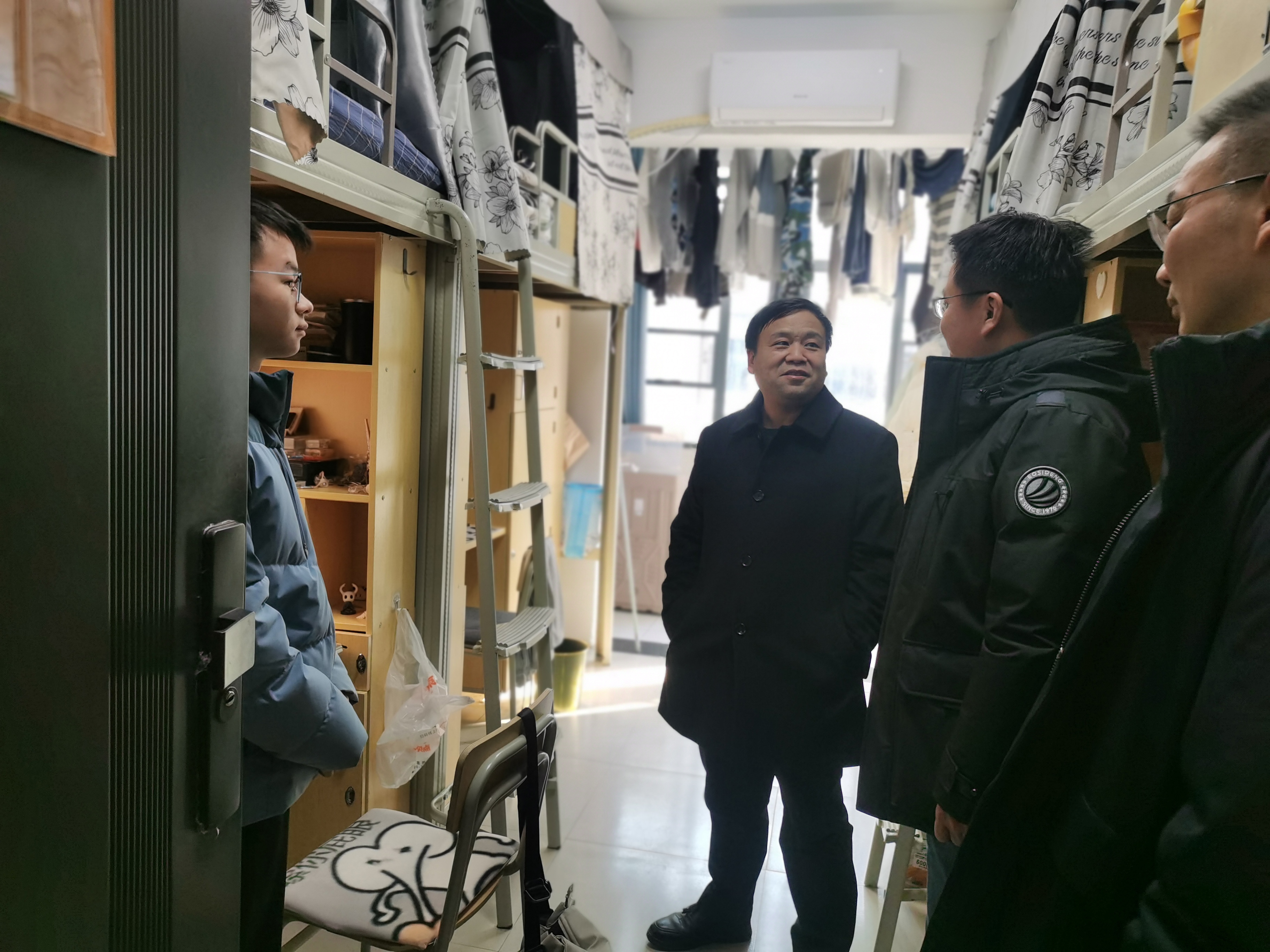 陈玉华一行对设备运行情况、消防设施情况等进行了逐一查看,确保无漏水漏电风险,避免假期因设施故障引发安全事故。在宿舍,他详细询问了尚未离校学生的学习和住宿情况,提醒大家一定要注意离校返乡交通安全和财产安全,强化反诈意识,过一个祥和、欢乐的春节。